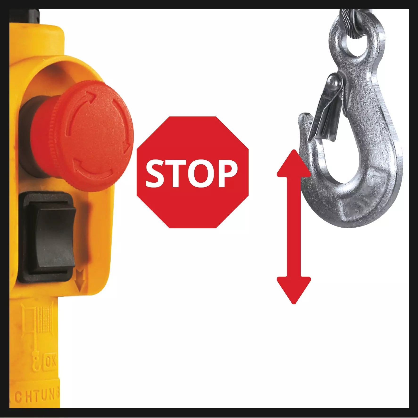 L'argano TC-EH 250-18 consente il sollevamento sicuro di carichi pesanti in casa, in giardino e in officina, semplicemente premendo un interruttore. Le sue numerose caratteristiche rappresentano vere e proprie tecnologie all’avanguardia. È dotato di un cavo metallico di oltre 18 metri con una sezione di 3,2 mm. Grazie al rullo di guida con gancio di sollevamento, è in grado di sollevare carichi fino a 250 kg ad un'altezza di 9 m. Senza il rullo di guida il carico massimo è dimezzato, ma l'altezza di sollevamento aumenta fino a 18 m. L'argano TC-EH 250-18 è dotato di numerosi dispositivi di sicurezza. La funzione di arresto di emergenza dell'interruttore di comando isolato garantisce lo spegnimento immediato, semplicemente premendo un tasto. L'interruttore termostatico protegge il robusto motore dal surriscaldamento. Il cavo metallico a prova di torsione impedisce al carico di ruotare durante il sollevamento. Il dispositivo di sicurezza sul gancio di sollevamento impedisce la caduta involontaria del carico, che è assicurato in ogni posizione da un freno automatico. Lo spegnimento automatico del dispositivo a finecorsa azionato tramite pressione assicura che l'argano venga spento in modo sicuro fino a raggiungere la sua posizione finale. Sono previsti due morsetti doppi per il fissaggio dell'argano. Per l'argano TC-EC 250-18 è disponibile separatamente un braccio orientabile idoneo, che può essere utilizzato per orientare carichi, per esempio in caso di sollevamento a livelli e piani più alti.